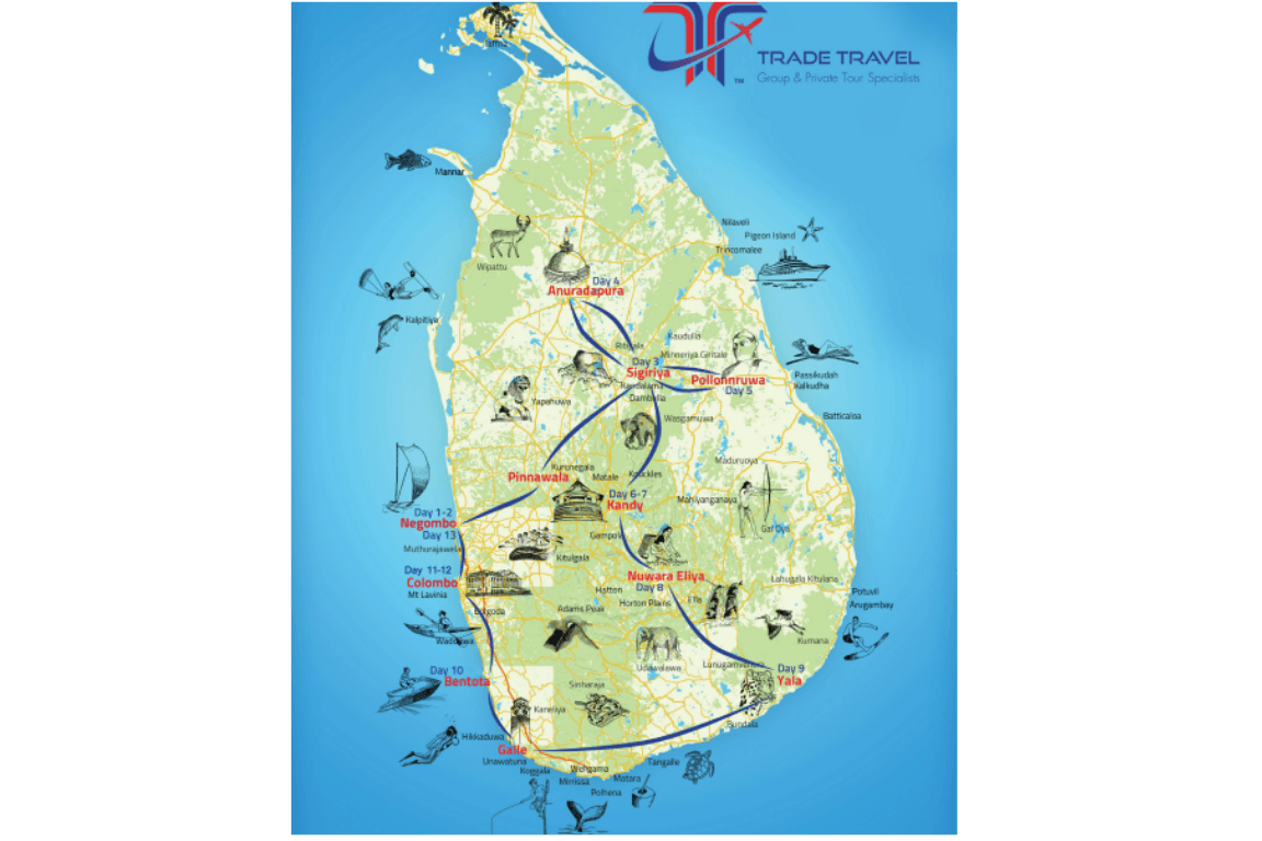Highlights: Negombo Highlights & Fish Markets; Elephants of Pinnawala; Sigiriya Rock Fortress & Museum; UNESCO World Heritage City of Anuradhapura; Ancient City of Polonnaruwa; Minneriya NP Elephant & Wildlife Safari; Lunch in the Paddy Fields; Sri Muthumariamman Hindu Temple; Ranweli Spice Garden; Matale Batik Factory; Cultural Kandyan Dance & Fire Eating/Walking Performance; Royal Botanical Gardens of Peredeniya; E.W Balasuriya & Co Gem Factory; Kandy Lake; Temple of the Tooth Relic; Traditional Oil Lamp Lighting; Lunch Queens Hotel; Kandy Markets; Lunch Ramboda Falls; Damro Labookellie Tea Factory & Tea Lounge; Hakgala Botanical Garden “seasonal”; English Styled Country Homes & Gardens of Nuwara Eliya; Ella Gap; Ravana Water Falls; Yala National Park Wildlife Safari; Galle Fort Precinct; Kosgoda Turtle Hatchery; Lunch Ceylon Curry Club Restaurant; Colombo City Discovery Tour; Galle Face Hotel Museum & Tour & much more.