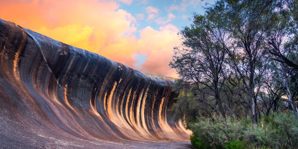 This morning, we farewell Fremantle early and make our way across to the Historic Township of York. We have time to purchase a cuppa and visit the amazing Motor Museum, where motoring history comes to life. We continue our journey to Corrigin, widely known as a ‘Town of Windmills’ due to the abundant supply of ground water, where almost every home had a windmill until 1960 when the town was supplied with scheme water. After a quick stroll at the Dog Cemetery, we take a drive along the Corrigin Wildflower Drive which starts opposite the Dog Cemetery and takes us on a well-maintained gravel track to the Scenic Lookout. Following lunch at the Mallee Tree Cafe and Gallery, we continue across to Hyden for check in. After settling in we take a stroll with our local guide to the iconic Wave Rock, a 27-million-year-old prehistoric granite rock formation, 15 metres high, 110 metres long and weathered into the shape of a wave. We also witness the “Hippos Yawn”, another unusually shaped granite formation. After witnessing the sunset over Wave Rock, we return to our motel to freshen up for dinner. Overnight Hyden: Wave Rock Motel