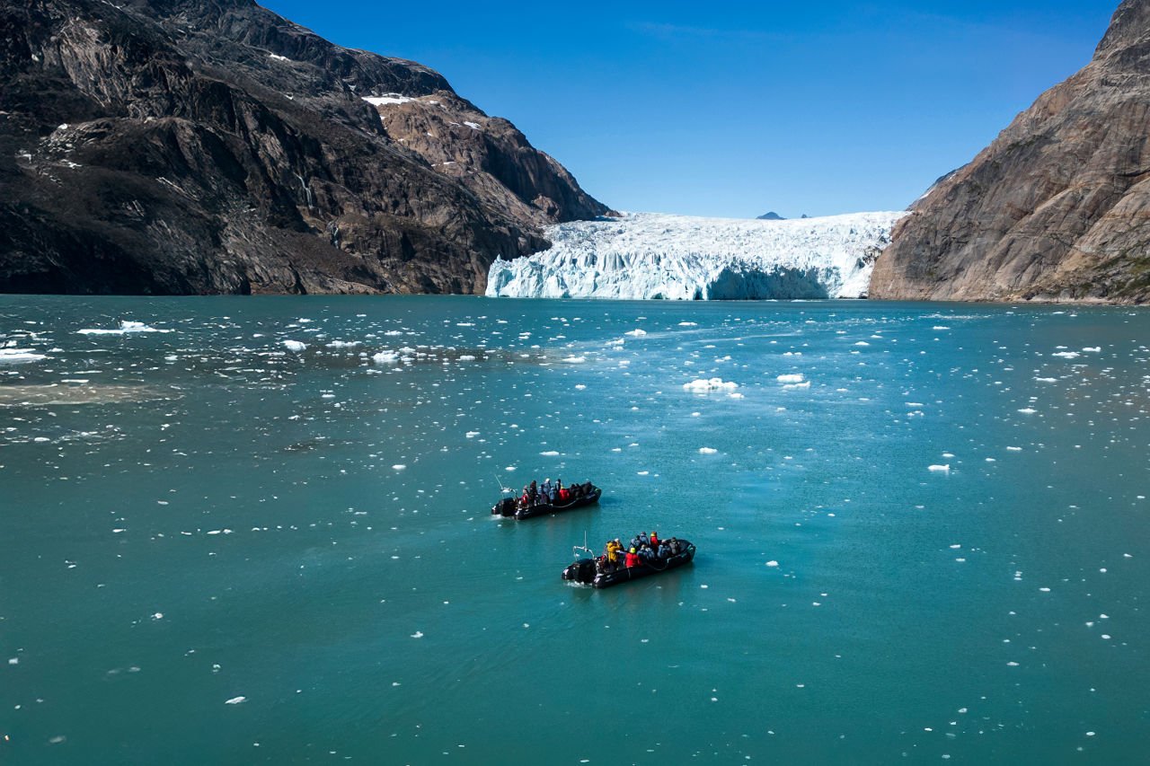 Explore the wild eastWe’ll spend the next 10 days exploring Greenland’s remote and pristine east coast. Extending for over 1,740 miles from north to south, this long stretch of coast is cold, isolated and remote, even by Greenlandic standards. The south-flowing East Greenland Current brings lots of sea ice directly from the Arctic Ocean, challenging human settlement but creating a heaven for ice-dependent wildlife, including the polar bear.Local weather and ice conditions will dictate our exact route, but our plan is to sail first to Scoresby Sund, the world’s largest fjord system. You’ll feel a deep sense of serenity in this wild and rugged region with white and blue icebergs floating in mirror-like waters surrounded by looming mountains. If conditions permit, we’ll visit Ittoqqortoormiit – the most remote inhabited community in the western hemisphere.Should the sea ice be favorable, we’ll continue our journey north to the beautiful Northeast Greenland National Park – the world’s largest national park. Visiting this fragile Artic wilderness is a rare privilege, as only a few visitors are permitted here each year.Apart from old trapper huts, some science research stations, and a military outpost, there are very few traces of human life in this 375,000 square mile park. Be assured that this is one of the quietest places on Earth, and you’ll enjoy a feeling of great peace as we explore this beautiful wilderness.As this is an expedition cruise, the Captain and Expedition Team will guide us to the most favorable spots on a day-by-day basis. Our goal will be to pack in as many shore landings, small boat cruises, nature walks, kayaking adventures and wildlife sightings as possible.